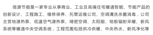 主营:天津地源热泵,天津空气源热泵,天津地源热泵施工维修公司,天津地源热泵安装厂家,天津别墅新风,空气除霾净化,中央热水系统
